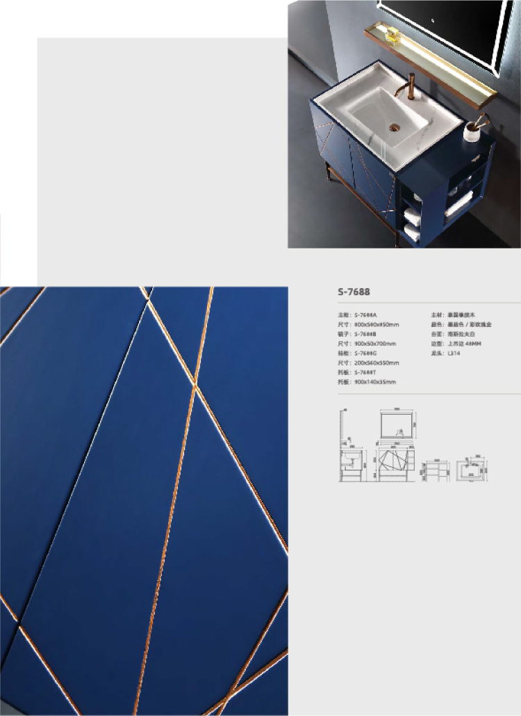 輕奢浴室柜S-7688 800mmx580mmx850mm
