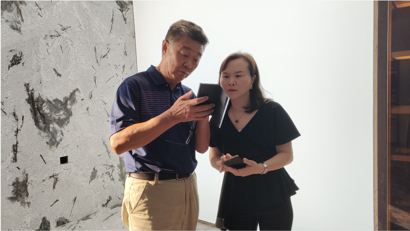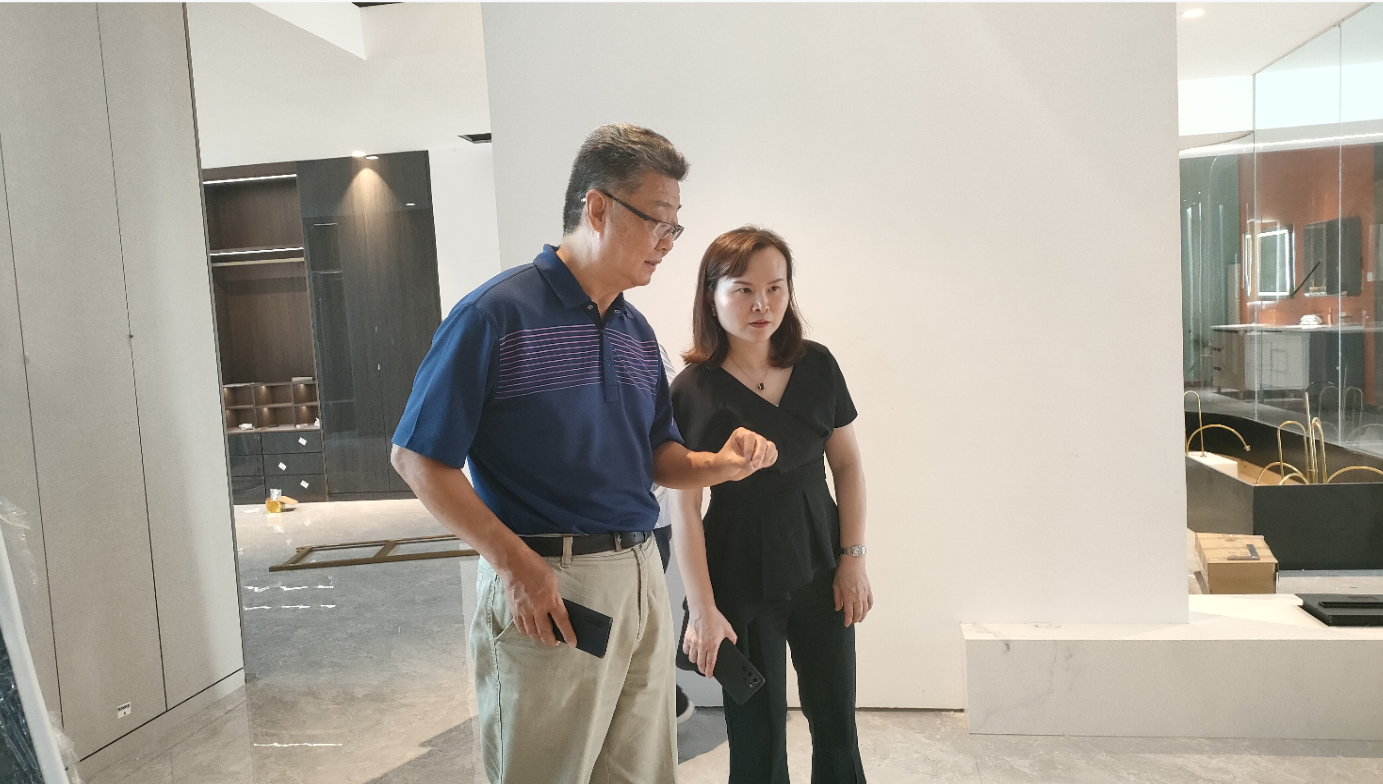 參觀完展廳后,新西蘭希爾頓酒店集團董總、澳門奧迪家居生活館朱總與歐凱莎副總經(jīng)理邱萍女士一同在會議室洽談項目。